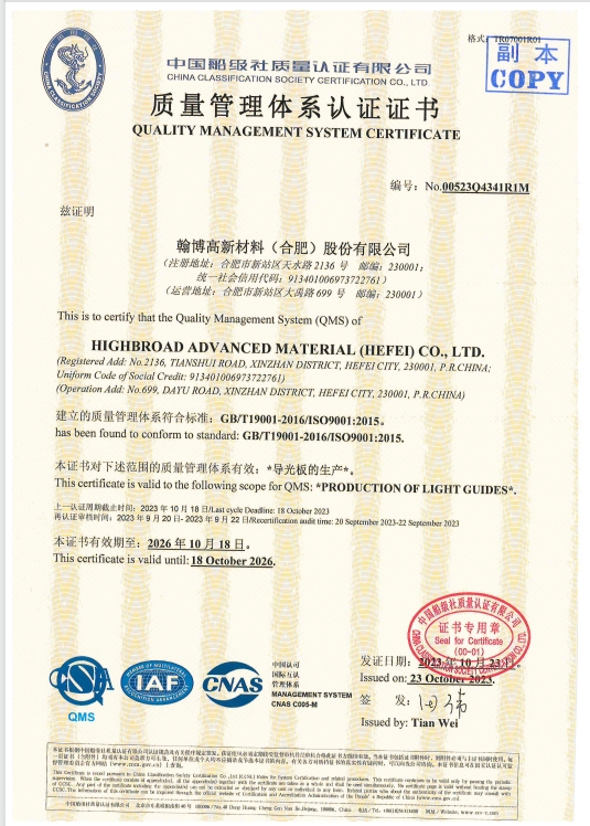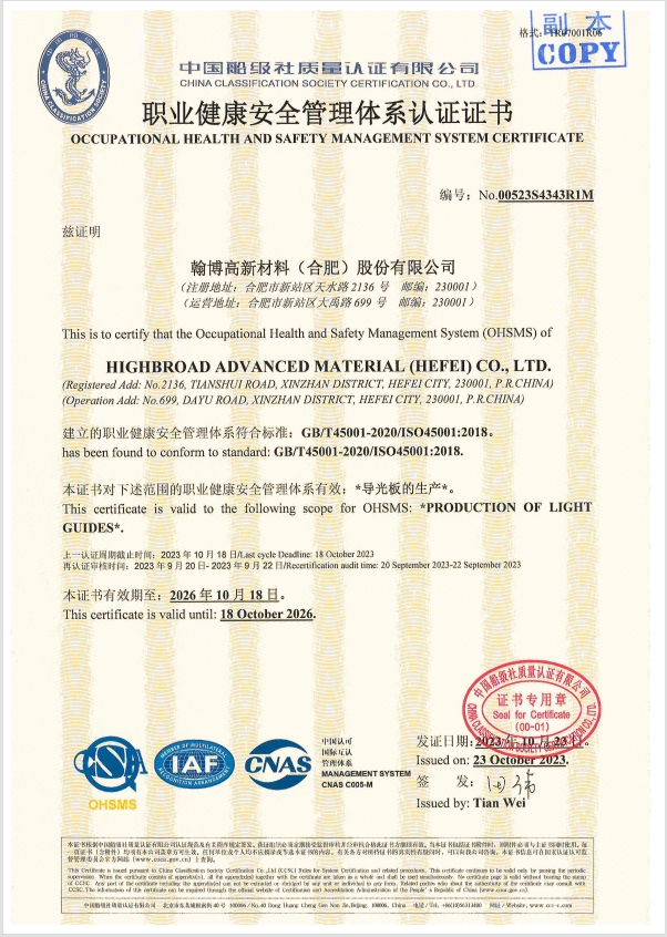 翰博簡介 企業文化 大事記 企業榮譽 專利證書 體系證書 體系證書 翰博簡介 企業文化 大事記 企業榮譽 專利證書 體系證書 翰博高新 合肥博訊 重慶博碩 滁州博晶 廣州歐訊 合肥星宸 重慶星宸 合肥領盛 合肥通泰 翰博高新-ISO45001 翰博高新-ISO14001 翰博高新-ISO9001 3條 首頁 1 尾頁 上一頁1 / 1 下一頁 股票代碼:301321 關于翰博 翰博簡介 企業文化 大事記 企業榮譽 專利證書 體系證書 產品中心 背光模組 導光板 光學膜片 膠粘類產品 精密結構件 OLED OPEN MASK再生及制作 新聞動態 新聞報道 行業資訊 黨群工作 黨群活動 工會活動 投資者關系 部門聯系方式 公司公告 年度&季度報告 在線咨詢 0551-64380736 地 址:安徽省合肥市新站區大禹路699號 傳 真:0551-65751228 Copyright ©2022 翰博高新材料(合肥)股份有限公司 版權所有 | 網站備案/許可證號:皖ICP備2021016865號-1 皖公網安備 34019002600191號 友情鏈接|黨群工作|聯系我們
